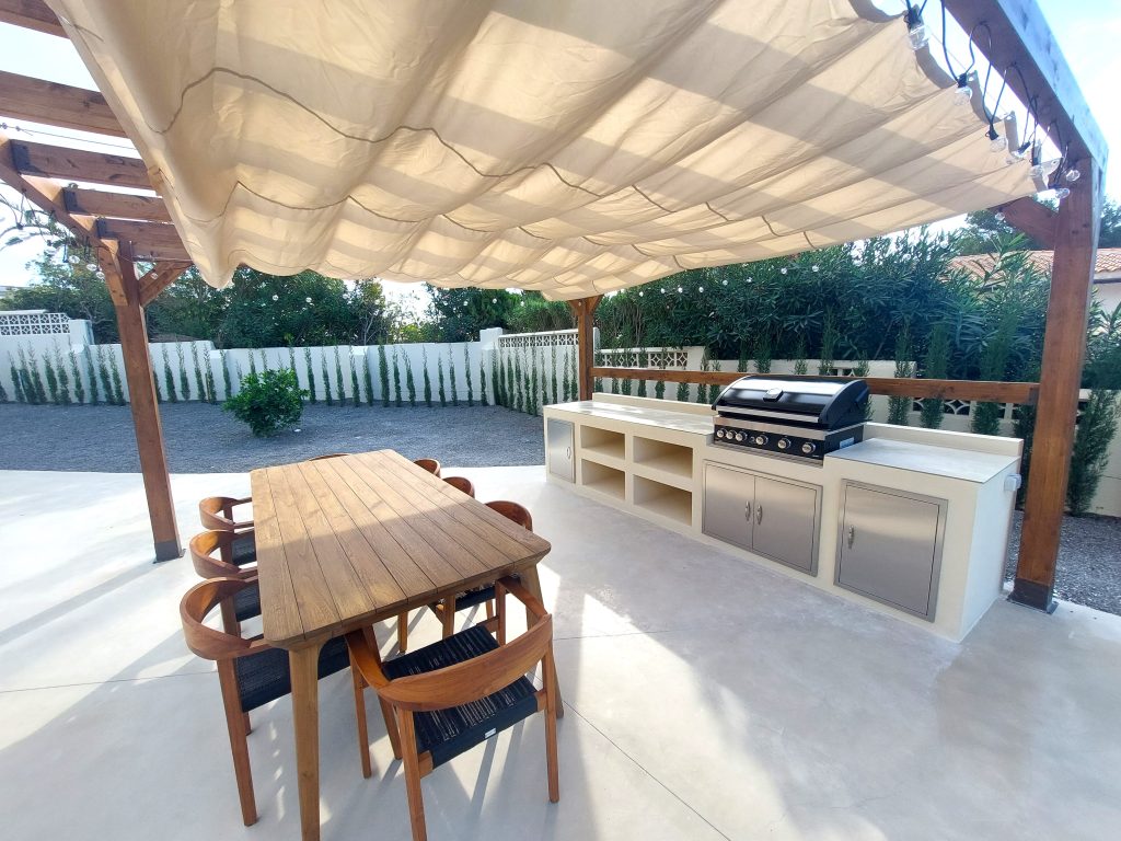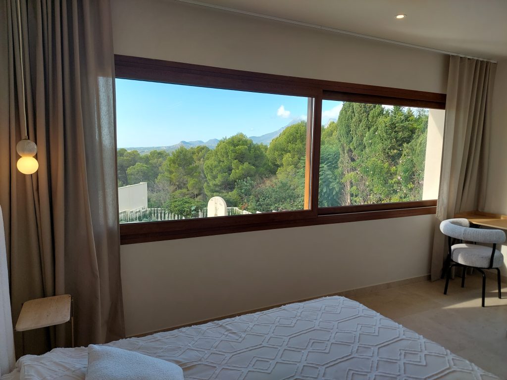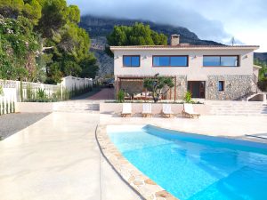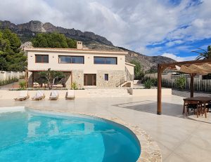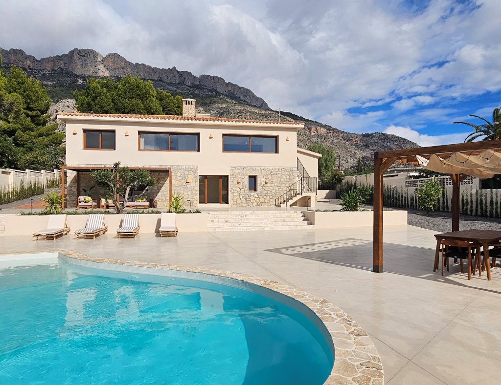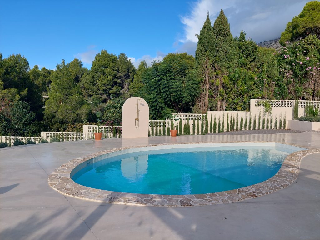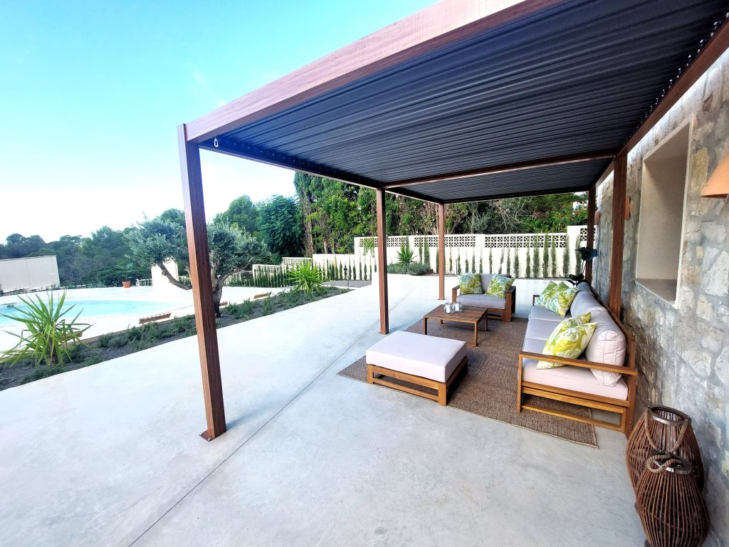 De tuin en het zwembad hebben een designbar/barbecue en een pergola van waaruit u kunt genieten van het uitzicht op de Bernia-berg en het bos.