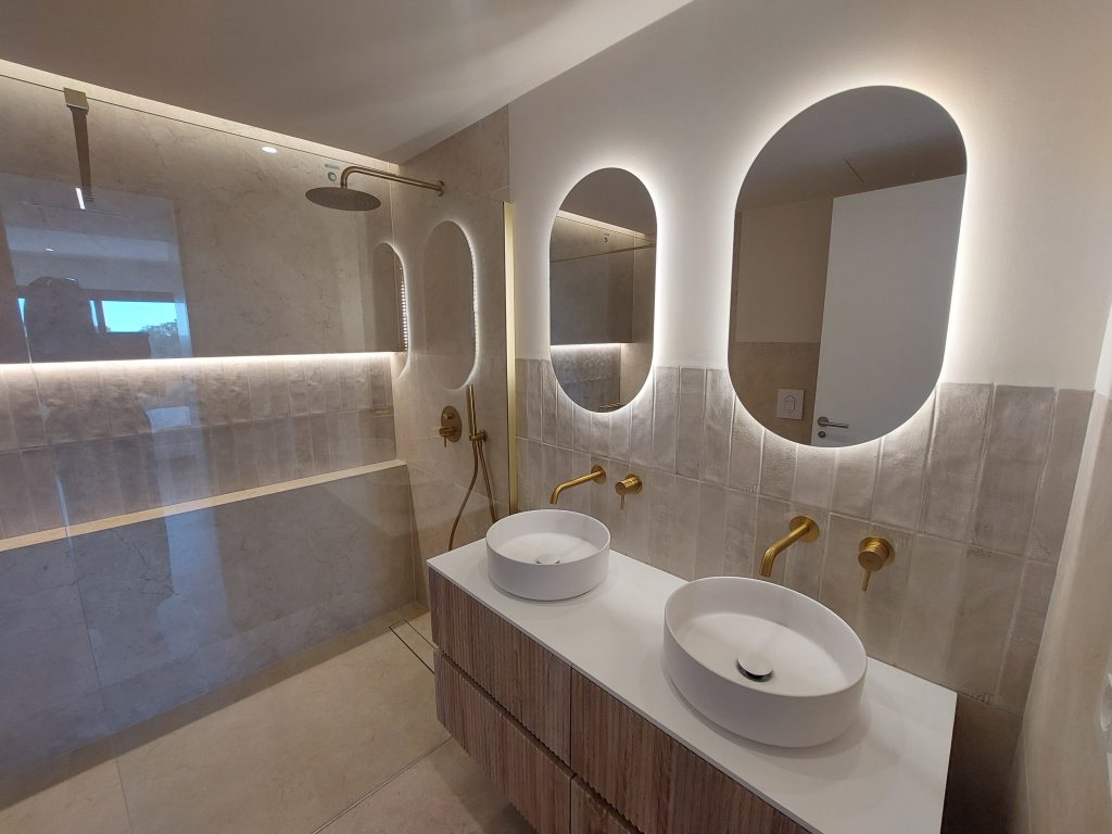 De mediterrane stijl is kenmerkend voor de villa met daarbij de hoge kwaliteitsnormen en afwerkingen. De villa heeft vloerverwarming, airconditioning en verwarming, wordt gemeubileerd verkocht en is volledig instapklaar.