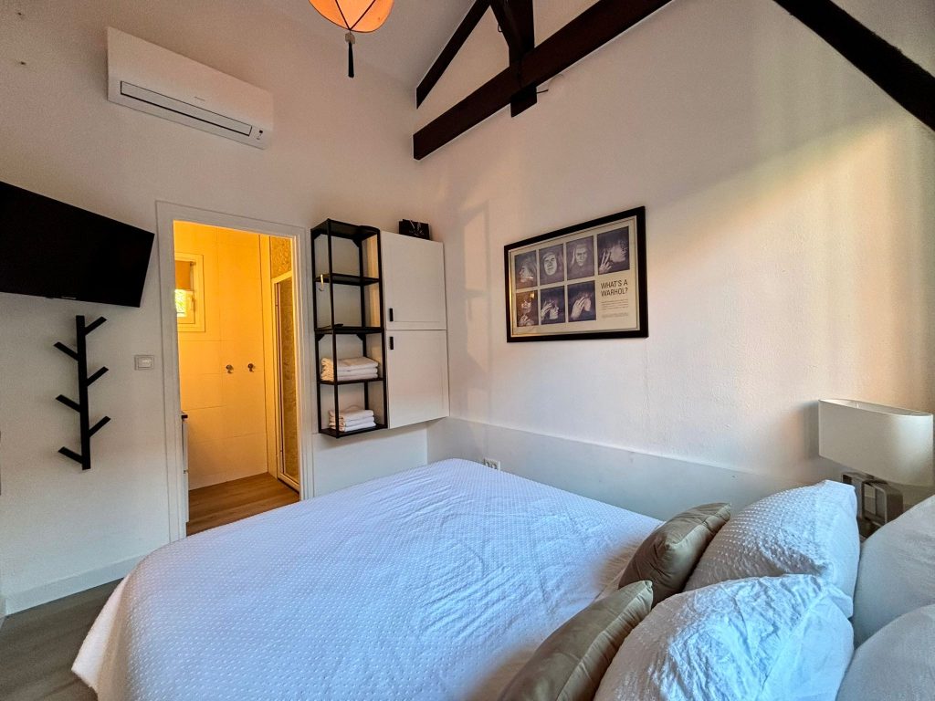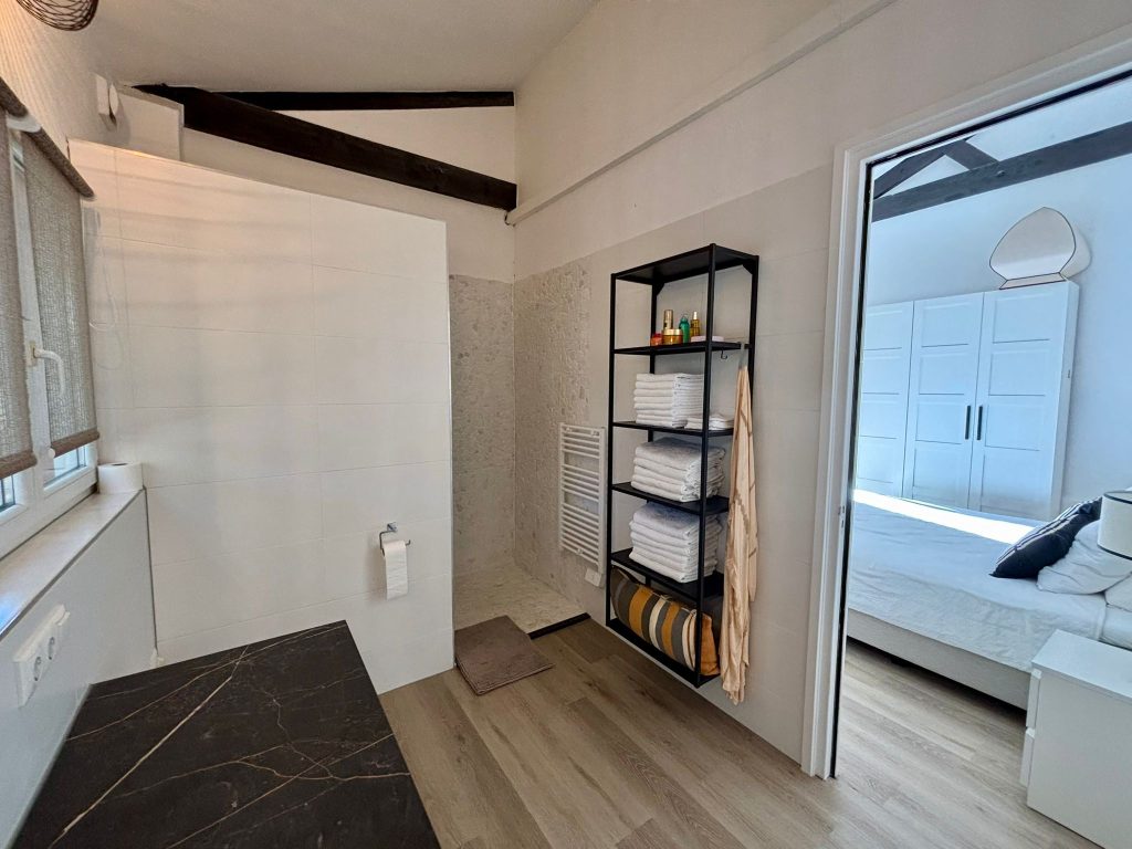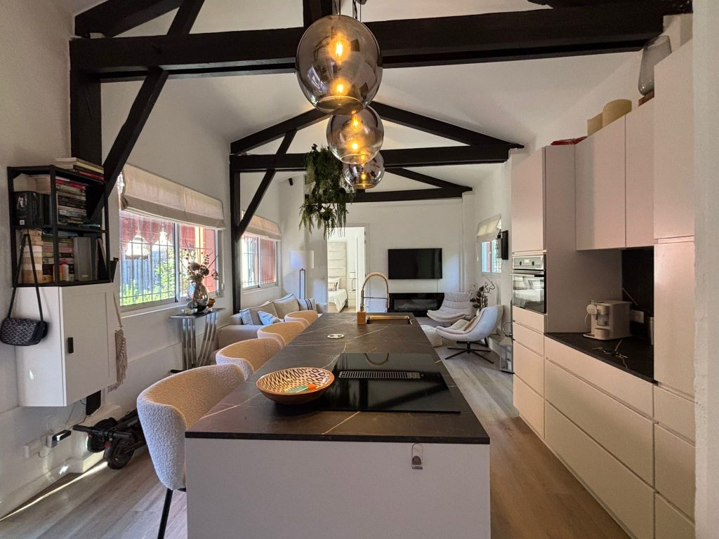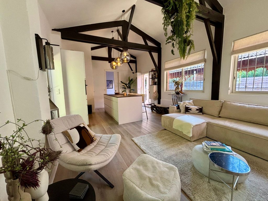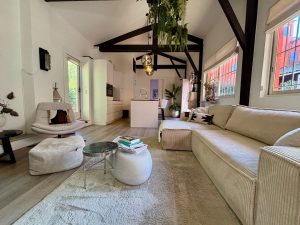 Het appartement heeft een aangename grootte (ca. 65m²). De hoge plafonds met balkenplafond geven het een ruimtelijk gevoel.