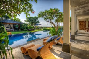 Dit moderne pand is perfect geïntegreerd in prachtig aangelegde tuinen op de top van de klif en is geïnspireerd op de traditionele Balinese architectuur en Feng Shui. Het beschikt over een gigantisch zwembad van 135 vierkante meter met een breed pooldeck, poolterrassen en een Bale.