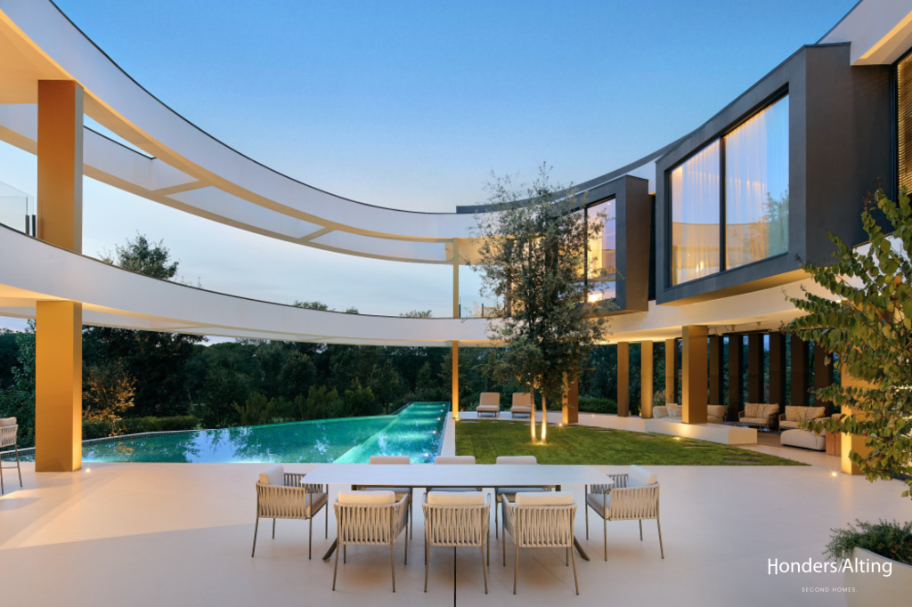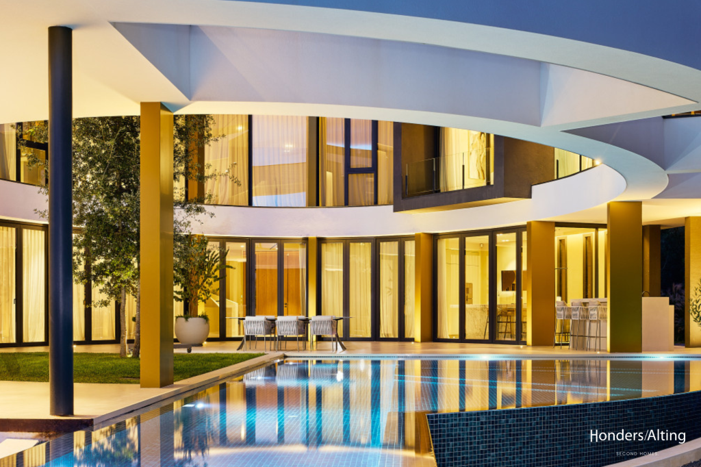 Met een woonoppervlak van circa 400 m² en een perceel van ruim 1.200 m² combineert Selva 25 rust, privacy en hoogwaardige architectuur in een groene omgeving. De villa telt vier ruime slaapkamers, vier badkamers, een strakke keuken met kookeiland, een ruime living met open haard en meerdere patio’s die binnen en buiten naadloos met elkaar verbinden. Dankzij de glazen puien en de slimme oriëntatie ervaar je vanuit elke ruimte zicht op de tuin, het zwembad of de baan.