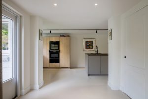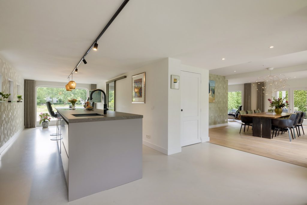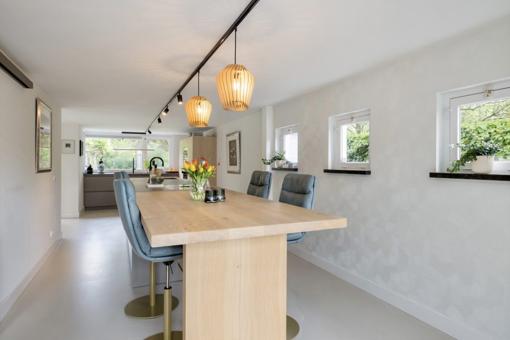 De keuken is recent vernieuwd en voorzien van hoogwaardige inbouwapparatuur. Dankzij ramen aan voor- en achterzijde is er zicht op zowel het Eikenven als de tuin langs de Achterste Stroom. Een tweede kamer grenzend aan de keuken is multifunctioneel inzetbaar als eetkamer, speelkamer of werkruimte.