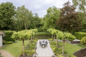 De tuin is recent heringericht en biedt diverse terrassen, een veranda, een tuinhuis en volwassen groen. Dankzij de ligging aan de Achterste Stroom en de vrije oriëntatie is het buitenleven hier uitzonderlijk aangenaam – in alle seizoenen.