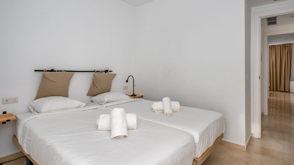 Het appartement beschikt over een ruime woon-/eetkamer met een open plan ingerichte keuken, waardoor u gemakkelijk kunt koken en entertainen. De hoofdslaapkamer heeft een eigen badkamer, terwijl er ook een gastenkamer is met een aparte badkamer. Met voldoende terrasruimte kunt u buiten ontspannen en genieten van het prachtige weer van Estepona.
