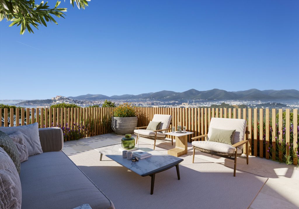 Casa Three Hills staat voor hoogwaardig wonen op Ibiza: centraal gelegen, omgeven door groen, met verfijnde architectuur, panoramische uitzichten en een harmonieuze verbinding tussen luxe wooncomfort en het natuurlijke landschap.