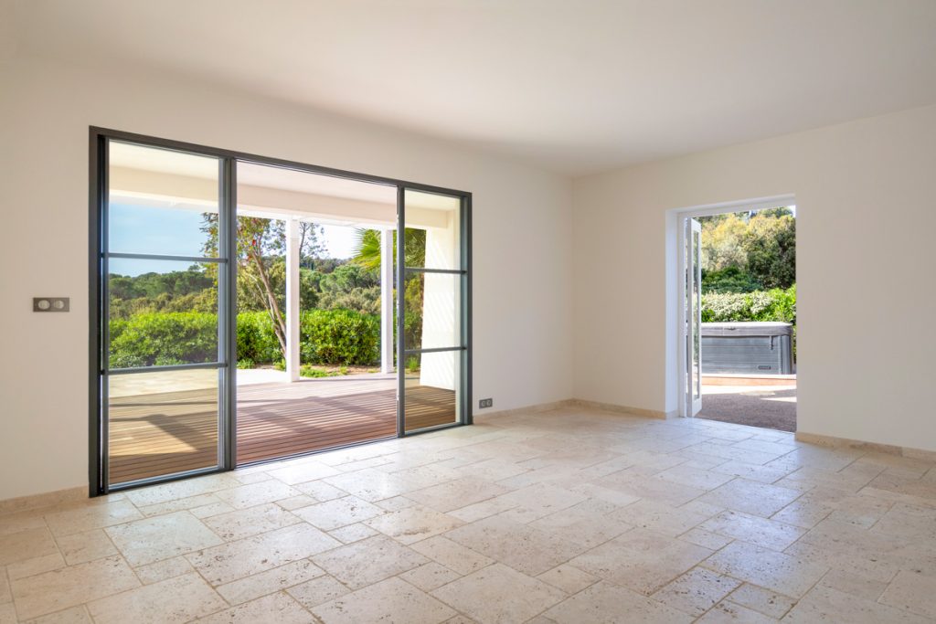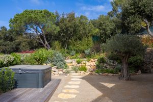 Je komt deze oase (1225m²) in La Croix Valmer, Gigaro binnen via een elektrische poort. Je kunt je auto parkeren in de dubbele garage of op de royale oprit.