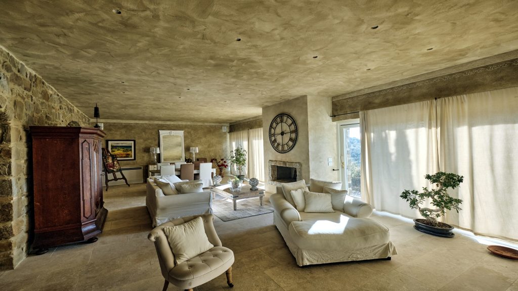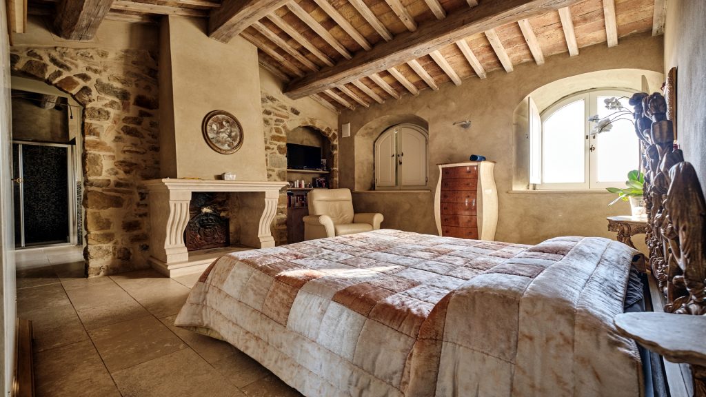 Beklim de travertijnen trap met een tongewelf naar de verdieping erboven, waar de slaapvertrekken wachten. De hoofdslaapkamer, compleet met een gezellige open haard en een eigen badkamer, biedt een vredig toevluchtsoord na een lange dag. Twee extra slaapkamers worden bediend door een tweede badkamer, zodat elke gast geniet van een comfortabel verblijf. Vanuit de verbindingsgang heb je toegang tot de tuin en kun je de andere verdiepingen extern verkennen, zodat je de schoonheid van de boerderij vanuit elke hoek kunt bewonderen.
