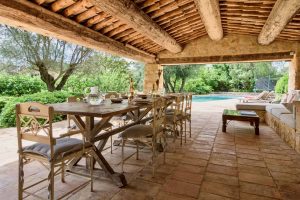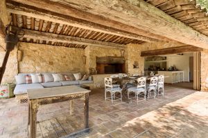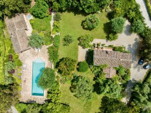Het grote mozaïekzwembad met een afmeting van 18 x 6 m. met ruime terrassen past perfect in deze idyllische omgeving. Een prachtig natuurstenen pool-house completeert het geheel. Ontwerp van architect Robert Dallas, het biedt een binnen-buiten leefruimte die ideaal is voor gezellige momenten met familie en vrienden. Het bestaat uit een grote overdekte eetkamer met vloerverwarming, een ruim grill gedeelte met pizza/bakoven en een volledig uitgeruste keuken.