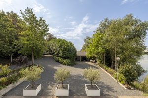 The villa is designed to effortlessly combine living and working. On the ground floor you’ll find several spacious offices and hobby rooms, ideal for those who wish to work from home or develop creative ambitions. Large windows flood the spaces with natural light and offer views of greenery and water, ensuring every workday starts with inspiration. For those who prefer to exercise or unwind, there’s a fitness room and a garden lounge with bar—perfect for hosting parties or enjoying an intimate dinner by the water.
