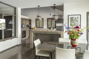The first floor is the beating heart of the villa. A spacious living room with designer fireplace, dining area, and luxury kitchen form a living space designed to enjoy both companionship and the spectacular views. Multiple-level terraces extend the living space outside, allowing indoors and outdoors to flow seamlessly together.