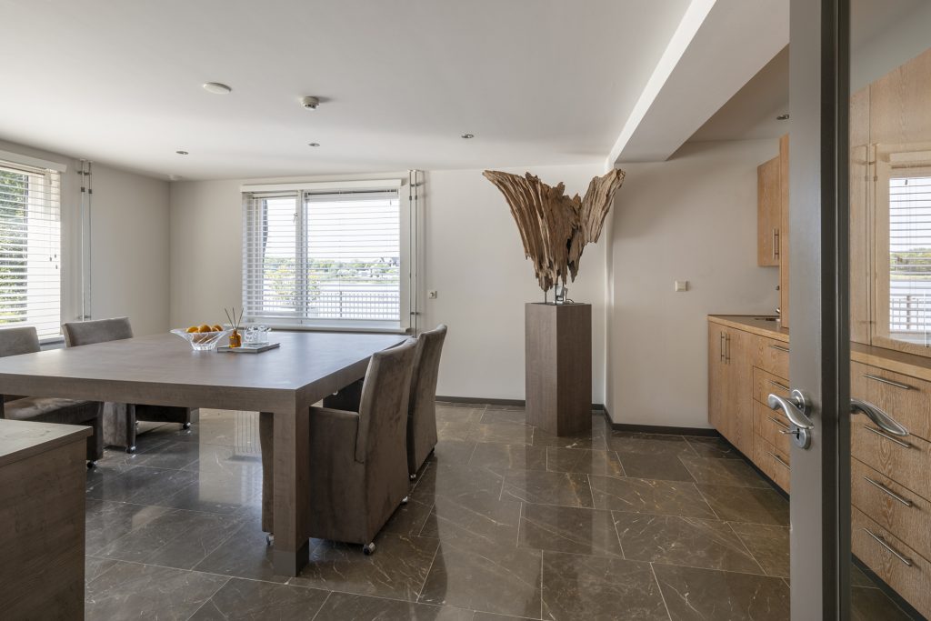 With several spacious bedrooms and bathrooms, the villa offers ample space for a large family or guests. The master suite—with its private bathroom and dressing room—overlooks the water, a view unmatched anywhere else in the Netherlands. Guests too will be spoiled, with plenty of privacy.