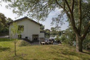 Direct aan de oever van recreatiemeer de Nieuwe Wiel ligt een villa die het alledaagse overstijgt. Hier woont u niet alleen in een huis, maar in een beleving: ontwaken met uitzicht over kabbelend water, lunchen op het zonovergoten terras, ’s avonds de ondergaande zon spiegelen in de golven. Het gevoel van vakantie, maar dan in uw eigen achtertuin.